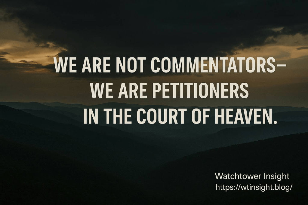 我們不是評論員,也不是觀察者。我們是代訴人,是神所尋找能站在破口、為國家提出訴訟的人。