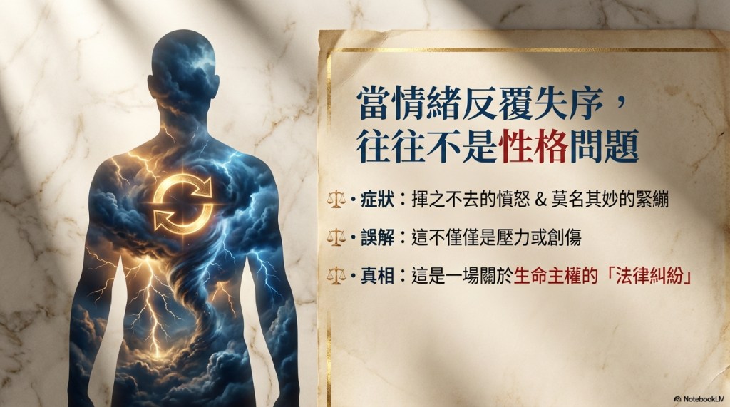 本文嘗試從「天上法庭」的治理視角,重新整理七種常見的情緒失序現象,並將其歸納為四大類主權被奪取的模式。