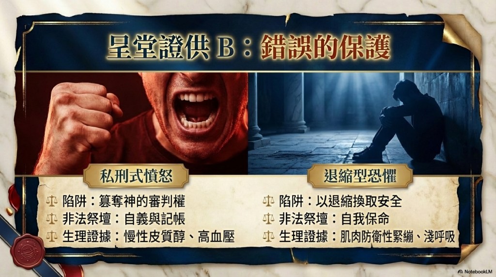 在靈界中,這會建立「退縮與自我保命祭壇」,使人在責任、關係與呼召前選擇後退;
